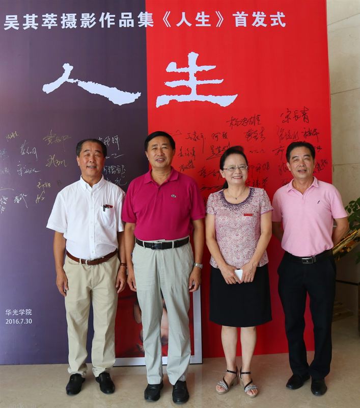 7月30日上午,吴其萃《人生》画册首发式在泉州洛阳隆重举行,各级领导,省内外摄影家,各界人士二百多人出席盛会。华光学院陈雅芳校长主持大会。省文化厅原厅长庄晏成,深圳著名摄影家谢力行,泉州摄影家协会主席洪宗洲,泉州学研究所所长林少川分别代表各级领导和组织致词。福建日报社,泉州电视台,泉州晚报社等众多新闻媒体现场报道。从一岁到一百岁的百幅人生图腾,感染了现场的每一位嘉宾。