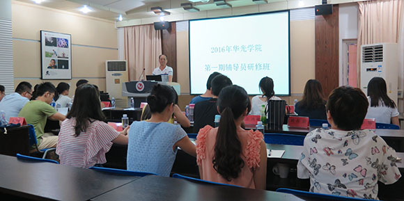 本次研修班为期5天,全体辅导员参加学习,开设“学生党建工作”、“学生实效性管理”、“就业导向与跟踪”、“新老辅导员交流”、“团委与社团管理”、“学生干部的选任与培养”、“辅导员能力提升”等课程,要通过理论考试、心得小结、阐述、答辩,才给予结业,并将研修期间的交流纪录、理论考试、心得小结及出勤登记存入工作档案,其目的是建设一支能力强作风硬的辅导员队伍。(林娟 供稿)