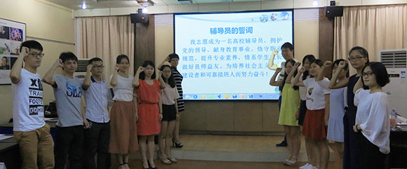 参训的新老辅导员通过心得小结、阐述、答辩等结业要求,并在学工处黄冬梅处长主持下,举行了“辅导员誓言”仪式。(林娟 供稿)