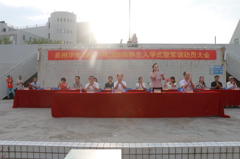 迎着洛阳江的晨风,沐浴着金色九月的朝阳,2016级新生们的大学军训生活开始了!9月5日早7时,2016级新生入学式暨军训动员大会在学院田径运动场隆重举行,吴其萃董事长、陈雅芳校长、周文林副书记、林述琦副校长等校领导,各二级学院院长、书记,有关处室领导,全体辅导员、班主任及2016级全体新生参加大会。大会由林述琦副校长主持。