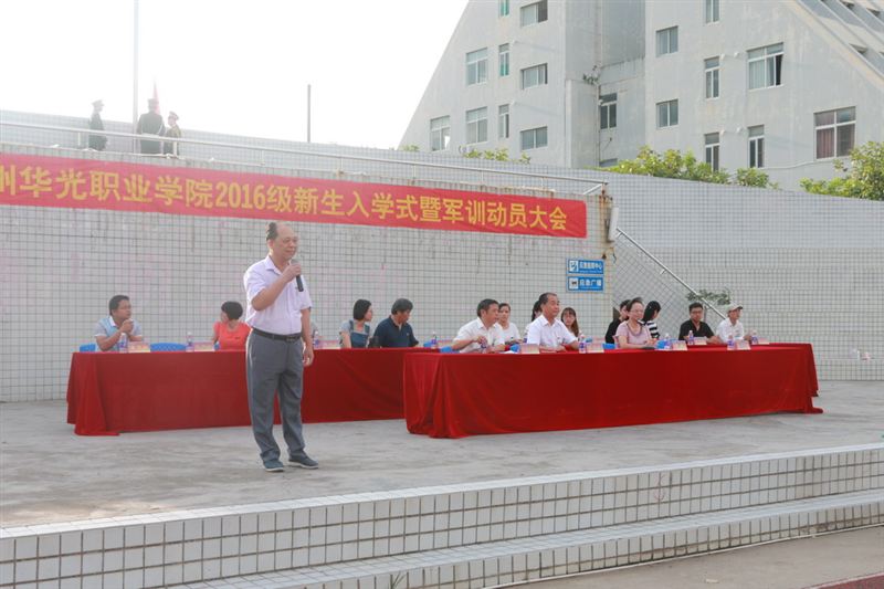 陈雅芳校长致辞,她欢迎同学们选择了华光,并回顾了华光24年艰苦创业的历史和今天取得的成就,号召全体同学承担学校赋予的神圣使命。她希望同学们自我定位、目标明确,把自己培养成“多才多艺、创新创业”型的合格人才;她希望同学们自我调节、自我适应,在校能快乐学习、幸福生活、健康成长;她希望同学们自我反思、适应学习,积极参加活动,增加新朋友,适应新环境,体验新生活。最后,陈校长说,大家要记得“千里之行始于足下”,在新的起点上,同学们要卯足洪荒之力,学习新知识,掌握新技能,实现新梦想。