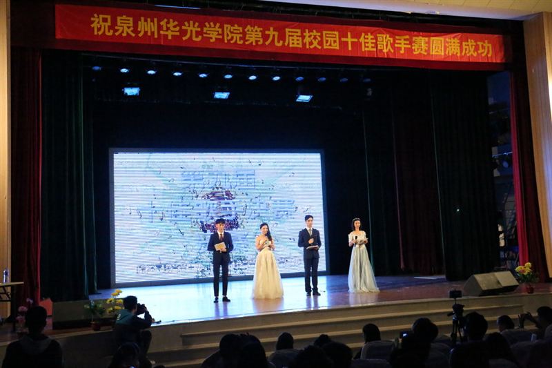 为了丰富校园文化生活,营造积极向上、健康文明的校园文化气氛,由我校社团联合会主办,音乐协会承办的第九届校园十佳歌手决赛于11月2日晚在我校吴文季音乐厅隆重举行。董事长吴其萃、学生处副处长陈雄、团委副书记陈一婷以及各二级学院领导出席现场,欣赏这场视听盛宴。同时有来自泉州黎明大学、泉州信息工程学院、泉州医学高等专科学院、泉州经贸学院、泉州海洋职业技术学院等学校学生代表和华光学子共同欣赏这场精彩表演。